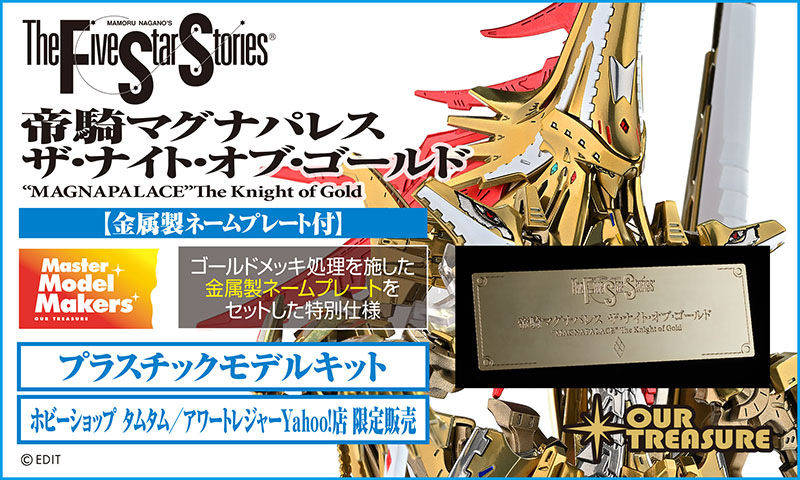 単行本第16巻に登場したファイブスター物語の主役ロボット 帝騎マグナパレス ザ・ナイト・オブ・ゴールドを永野護氏監修のもと1/144スケール・プラスチックモデルキットとして製品化しました。